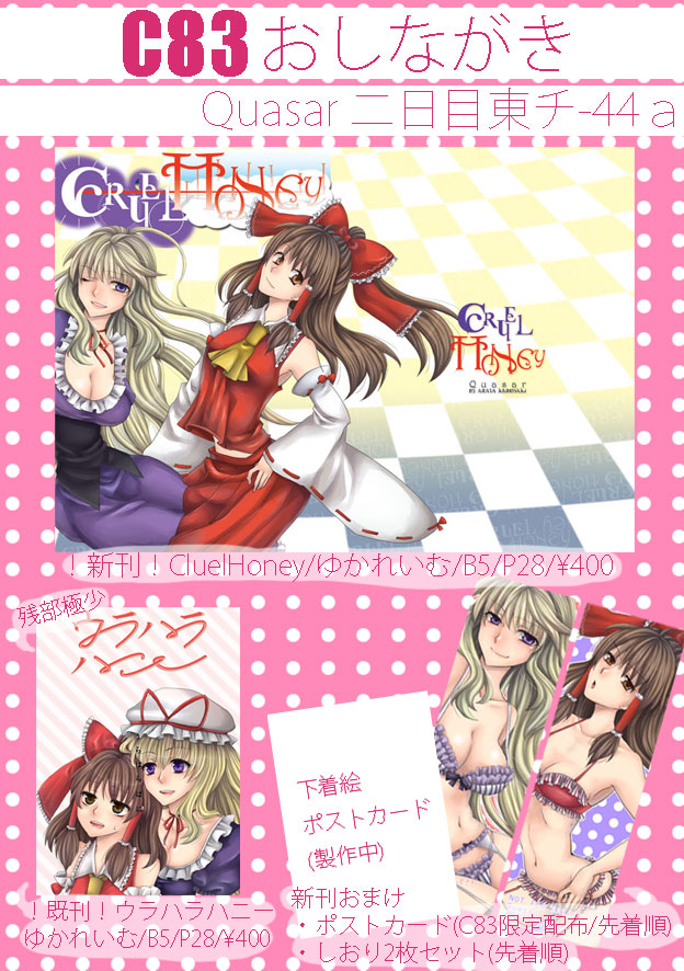 夏コミは、冬東方で出たのもあり、なおさら受かるか不安でございます…!orz